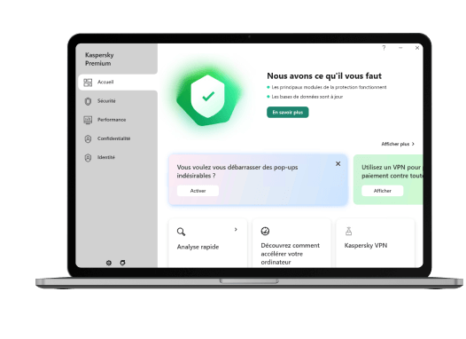 Kaspersky Premium est la solution de sécurité la plus complète proposée par Kaspersky, offrant une protection maximale contre les menaces en ligne, ainsi que des fonctionnalités avancées pour la confidentialité, les performances, et la gestion des données.